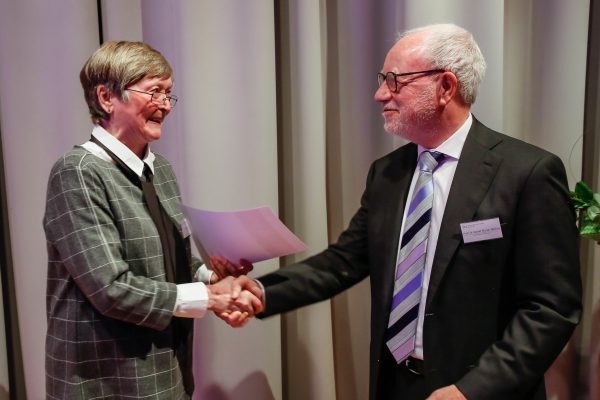 Detlef Müller-Böling war bei der Preisübergabe besonders begeistert von der Unterschiedlichkeit und der Kreativität der Ideen. Er meinte, dass die Gesellschaft zu Recht an Universitäten die Forderung stellen könne, auch bei der Integration von Zuwanderern in Deutschland eine Vorreiterrolle zu spielen. Wobei der Begriff Integration ja häufig so (miss)verstanden werde, dass die Zuwanderer so deutsch würden wie wir. Er stellte dagegen den Begriff der Akkulturation, d.h. Deutsche und Zuwanderer sollten gegenseitig aufeinander zugehen, voneinander lernen, aber auch Diversität und Andersartigkeit aushalten. Genau das sei erfreulicherweise in den prämiierten Ideen angelegt.